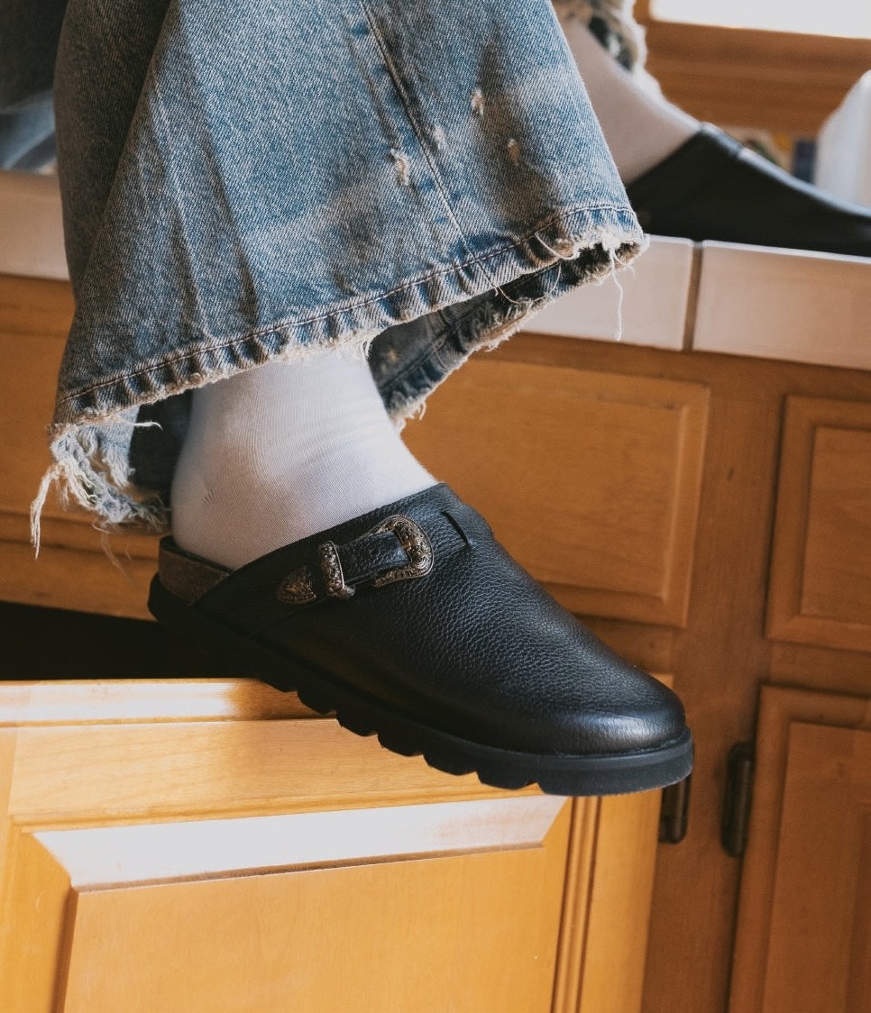 The Way Out West Drop One features two new models from the London-based brand, including the MOBY, which comes in 3 colours, including a faux cow print upper and the WINSTON mule in black pebble leather, which features custom western-inspired buckles on the lateral side of the adjustable strap.